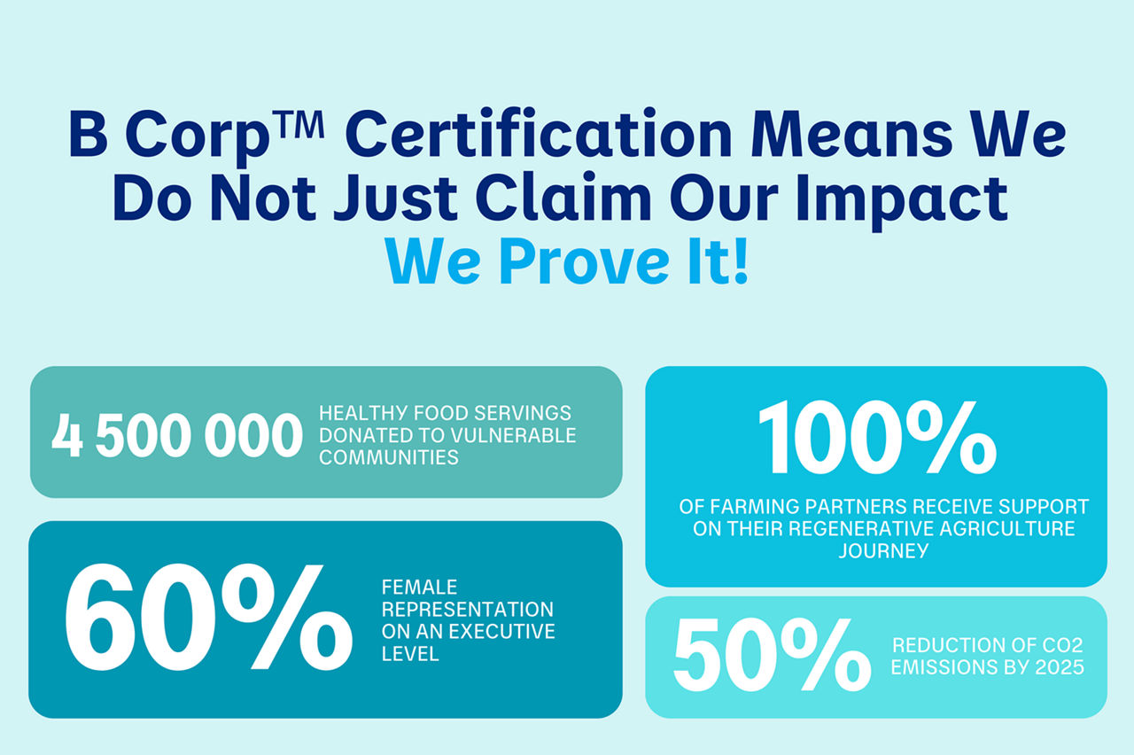 In 2024 Danone South Africa became B Corp certified with a score of 89.9%. Our full transparent report is available on the B Lab Website