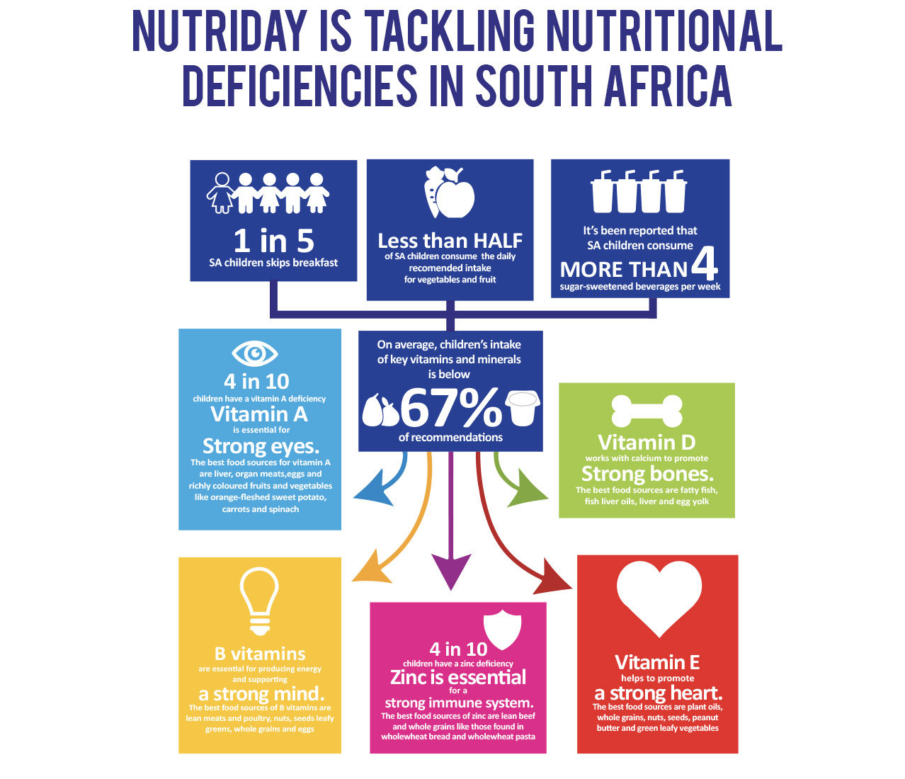 Healthy eating ensures that you get all the different nutrients you need to take care of your body. We know that many South Africans, especially children, miss their intake of key nutrients affecting their ability to learn, grow and meet their full potential. Including nutritious foods into your diet can help close the nutrient gap, and help you be Strong Every Day!