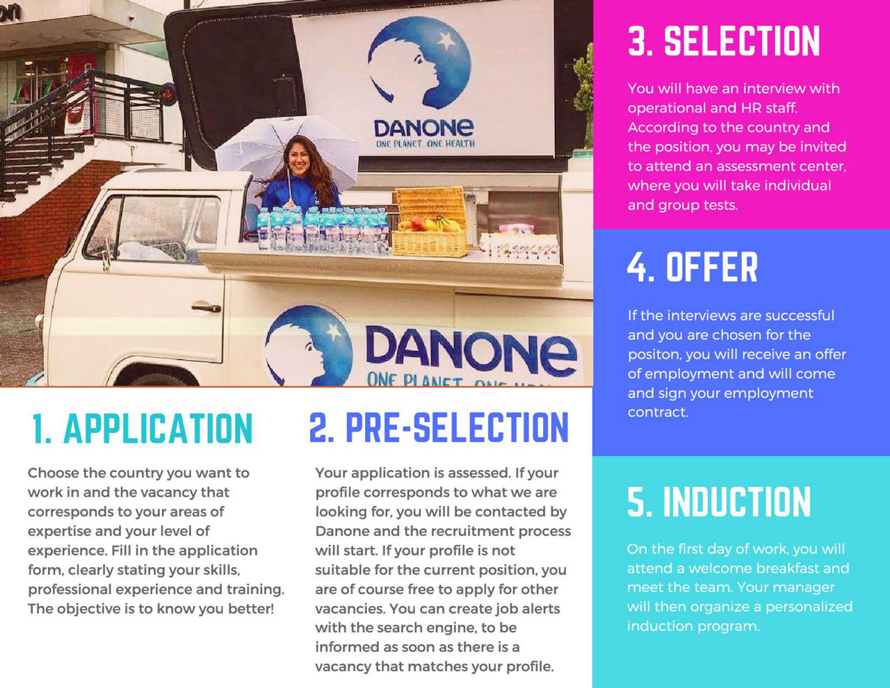 - Find out about Danone beforehand: our activities, our brands and above all our values, our way of working,…