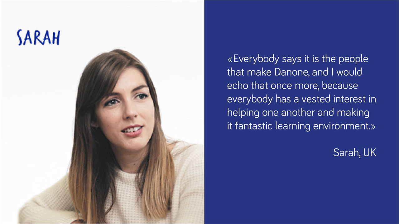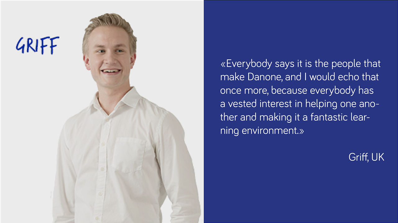 During their internships/graduate program, Sarah, Griff, Louisa, Emilie and all of our former interns and trainees have had a taste of the Danone culture from all over the world. Come and discover what they remember from their experience! If you’re thrilled by what they say, go and check opportunities on jobs.danone.com