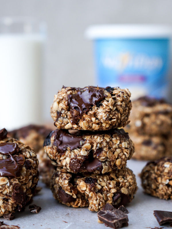 Chewy and hearty banana oat breakfast cookies with a boost of protein! These healthy Double Cream Plain Yoghurt banana oat breakfast cookies are easy and made with no flour, sugar, butter or oil, yet SO satisfying.